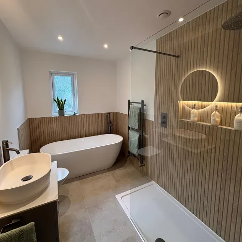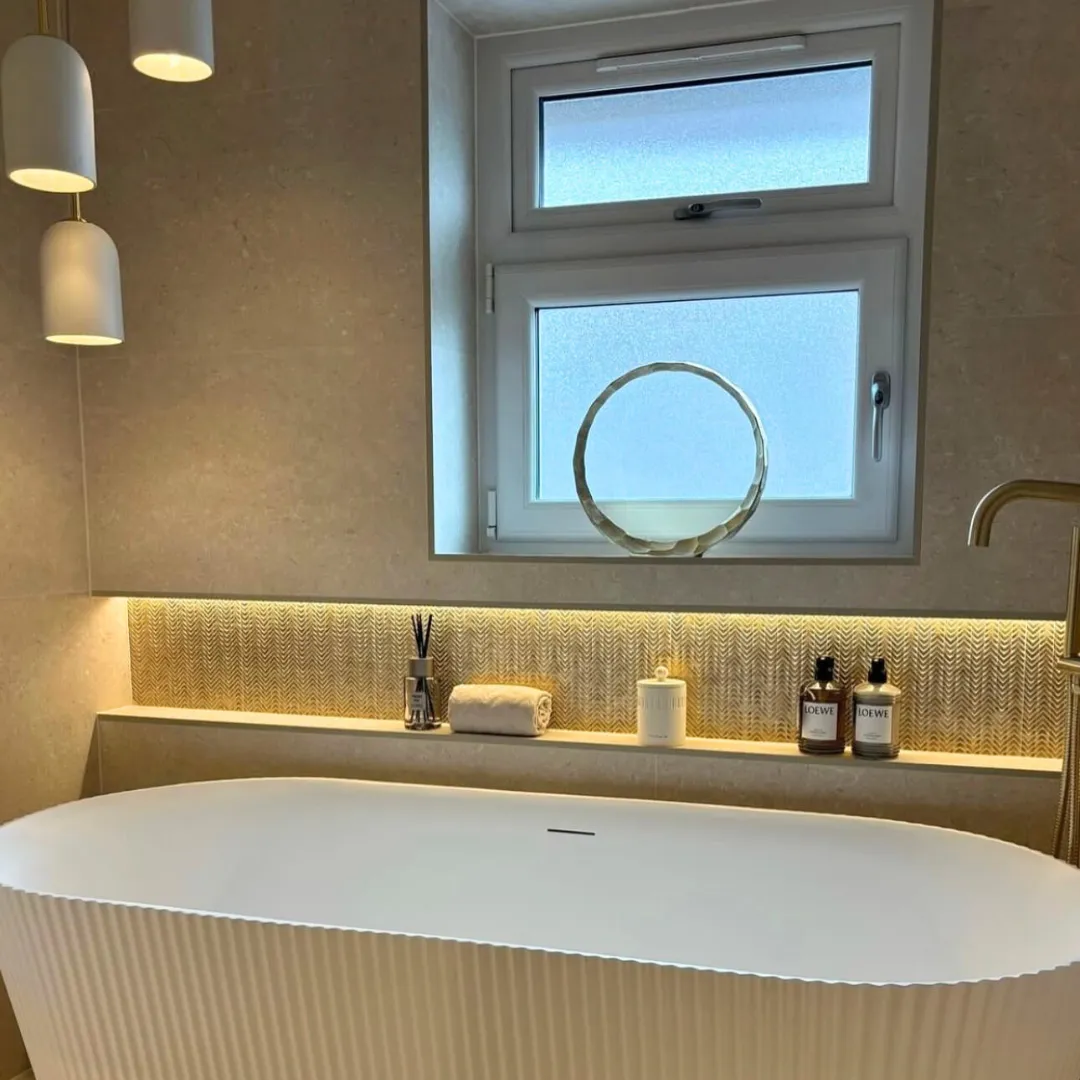 Underfloor heating, niches, alcoves, feature walls, mitred tiles (no trims)